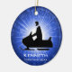 Snowmobile Ornament on a blue starburst background. All text customizable, front and back!