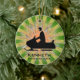 Snowmobile Ornament on a starburst background. All text customizable, front and back!