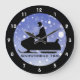 Snowmobiling Design Clock against a blue snowy background and customizable text. For no text, delete sample text and leave blank.
