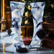 Capture the calm elegance of snowy landscapes with these abstract winter socks, featuring a delicate interplay of blue, lavender, and soft white tones on a sleek black base. With intricate patterns that evoke falling snow and frosty air, these socks are perfect for art lovers seeking a stylish addition to their winter wardrobe. Cozy, artistic, and ideal for seasonal outfits.