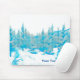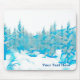 A stylized, blue monotone image of conifer trees covered in snow. Add your own text.