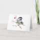 Charming illustrated Winter Chickadee on a branch with a single winterberry in the snow.