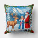A delightful Christmas-themed illustration of Santa Claus, a young child, and a rabbit amidst a snowy, festive background adorned with gifts and decorations.
