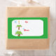 This Christmas holiday gift tag has a tree topped with snow with blue snowflakes falling. ©2010 JD Digi Designs