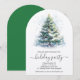 A snowy decorated Christmas tree accents these arch-top holiday party invitations with your details in chic lettering.