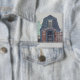 "Snowy Day in the Neighborhood" depicts a gray, barn-style house on a snow day in Portland, Maine. The original artwork is 12x16 pastel pencil on paper.