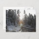 Snowy dirt road going into the sun postcard