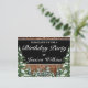 Birthday party postcard invitation. Rustic brown wood, snowing background and snowy forest. Cozy vintage country style. More items are available in this style in our store. You can edit the design further, change colors, fonts and add extra text by clicking "customize further" link.