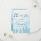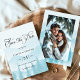 Announce your wedding with these Snowy Forest Winter Wedding Photo Save the Date Cards. Featuring a romantic snowy pine forest background in soft dusty blue tones, the design includes space to showcase your favorite engagement photo. Perfect for rustic, forest, or mountain weddings.