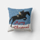 Fun snowy horse jumping Christmas pillow with a horse and rider jumping over the greeting Merry Christmas. Great way to decorate your home or even in the barn office during the holiday season!