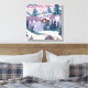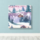 Snowy Mountain Cabin Watercolor Canvas Print!