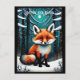 Snowy Night Forest Cute Fox Christmas Holidays Postcard