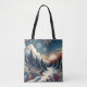 Snowy Night Moose Forest Mountains Boho Pattern Tote Bag