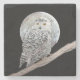 Snowy Owl and Moon Painting - Original Bird Art Stone Coaster