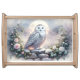 Snowy Owl in Moonlit Winter Garden Serving Tray