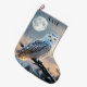 Snowy Owl in Winter Moonlight with Snow Falling Large Christmas Stocking