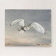 A digital rendering of a Snowy Owl (Bubo scandiacus) superimposed on a wintery, gray sky background. Add your own text.