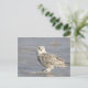 Snowy owl standing on ice, a mouse's tail postcard