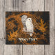 This pair of snowy white owls ask the question of "Who's There" at your doorway. They're festive for Halloween in cream against orange and black but are generic enough to work for the whole harvest season. These vintage owls are perched against orange swirly damask and the ghosted remains of autumn leaves. This design might help get you in the mood for crunchy leaves, spiced hot cider, pumpkins, cooler crisp air, and the fall season. The owls are from a vintage botanical illustration in the public domain.