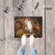 Snowy Owl Who's There Orange Damask Halloween Doormat