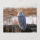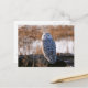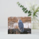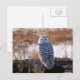 Photo of a snowy owl winking. The owl is sitting on a piece of driftwood on the beach surrounded by dried vegetation. This owl picture can be customized with your own text in the typestyle of your choice.