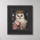 Snowy Owl With a Crown and Pink and Blue Flowers Framed Art