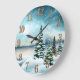 Snowy pine trees near a lake large clock