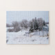 Snow blankets the cottage and pastures of this lovely ranch in Nevada. Designed by Diane Blackman. The scene is classic winter Christmas card image.