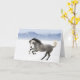 This dappled gray Andalusian mare runs in the snow in Colorado. There is another image of the mare inside the card. Both images are by Carol Walker.