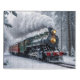 A Winter Wonderland artwork capturing a snowy train traveling through a picturesque winter wonderland.