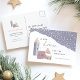 A cozy holiday moving announcement postcard with cute hygge vibes, featuring a snowy Christmas village scene. "A new home for the holidays" appears with your family name on the front. On the back, personalize with your new address and family signature.