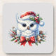 Snowy White Christmas owl dressed for Christmas in the snow coasters