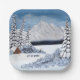 Nestled at the base of the mountains sits a rustic wooden cabin, its sloped roof heavy with thick layers of snow. Surrounding the cabin, evergreen trees stand tall and quiet, their branches weighed down with frost and snow. The forest forms a gentle barrier between the cabin and the open mountains, creating a sense of shelter and solitude.