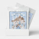 This adorable snowy winter Princess paper cup features a snow castle and beautiful young princess with brown hair wearing a blue and white snowflake gown and warm fur lined cape. The princess is standing in front of a snowy fairytale castle. You can personalize with the special birthday princess's name, year and date!