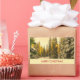 Stickers with a beautiful nature photograph. An isolated winter path with tall snow covered pine trees.