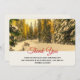 Thank you card with a beautiful nature photograph. An isolated winter path with tall snow covered pine trees. A golden twilight hue creates a magical feel to this photo.