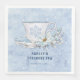 This Winter Tea Party napkin features a sweet tea cup adorned with winter berries and a poinsettia on a blue background. The party details can be edited by clicking "personalize this template." Colors include pale blue, navy blue and white.