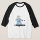 I bought the Men's Basic 3/4 Sleeve Raglan T-Shirt, White/Navy. It arrived on time for a gift and is of a great quality and fits perfectly! So cute! Zazzle has done it again! The printing was clear and filled in solidly.