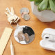 An orange tabby long haired cat and a black cat snuggle up together in their cat tree cause it's cold outside photo keychain