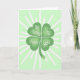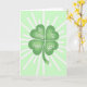 This card features a four-leaf clover centered on a soft mint-green background, with each leaf shaped like a small heart that hints at closeness and care 💚. The clover is a deeper, gentle green, and its slightly textured look gives it a cozy, touchable feel. Across the four leaves, white lettering is placed one word per leaf to read, “So Lucky To have you,” turning the lucky symbol into a quiet, affectionate note between friends or partners ☘️. Behind the clover, thin white rays spread outward like a softened sunburst, adding a calm glow without stealing focus. The simple green-and-white palette keeps the scene calm and sweet, like a small moment shared between two people who really value each other. The phrase sits right in the middle of the clover, with the words evenly spaced so your eye naturally reads from top to bottom and left to right. Rounded ends on the white rays and the smooth pastel background keep everything gentle and easy to look at. The clover’s stem points downward from the center, framed by the pale mint field and the radiating white lines.