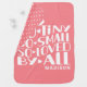 So Tiny Small Loved By All Baby Newborn Typography Name Baby Blanket features the text "So Tiny So Small So Loved By All" in modern white script accented with love hearts. The reverse features a geometric pink and white diamond pattern. Personalize by editing the text in the text box provided. Designed by ©Evco Studio www.zazzle.com/store/evcostudio