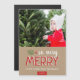 Affordable custom magnetic holiday photo cards with simple templates for customization. This modern design has a festive mix of typography in red and white on a faux kraft paper background. The wording says "So Very Merry". Personalize it with your photos and add your family name and the year. Use the design tools to edit the text, add more photos and create unique one of a kind Christmas photo card magnets.