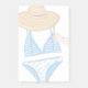 Soak up the Sun II by Blanckslate. Features a blue two-piece swimsuit with a wide-brim straw hat and sunglasses for accessories. | 140678GG