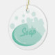 Lightweight, smooth, pure white ornament with nice sheen. Perfect size to be seen from across the room ... and to attract closer inspection! Price was great for ordering enough for the whole family! Clear, bold black design just as requested. Matches the order exactly. Just so nice!