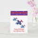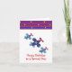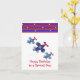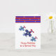 A fun design accents this birthday card. Three soaring airplanes in shades of blue with red propellors. A border of blue and red stripes with little yellow stars. Customize as desired.