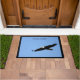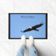 Soaring bald eagle makes a eye catching first impression, on sturdy welcome door mat.