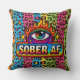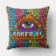 This pillow does not blend in. It shouts “SOBER AF” with a blazing rainbow eye and leopard spots that could wake the dead.