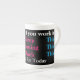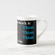 Nice quality cup. Thin rim makes it comfortable to drink out of. Perfect color print. The exact color I was hoping for.