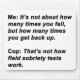 For the sarcasm lover in all of us. Check out this witty “Me: It’s Not About How Many Times You Fall, But How Many Times You Get Back Up. Cop: That’s Not How Field Sobriety Tests Work.” design on apparel and gifts.
