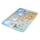 A spectacular cartoon of Southern California – Santa Barbara, Los Angeles, Anaheim, Long Beach, San Diego. This charming scene has it all – a surfer hangs ten as a mermaid lounges on a rock, a T-Rex roars a challenge, a killer whale leaps out of the water while a muscular beach couple both flex to impress...